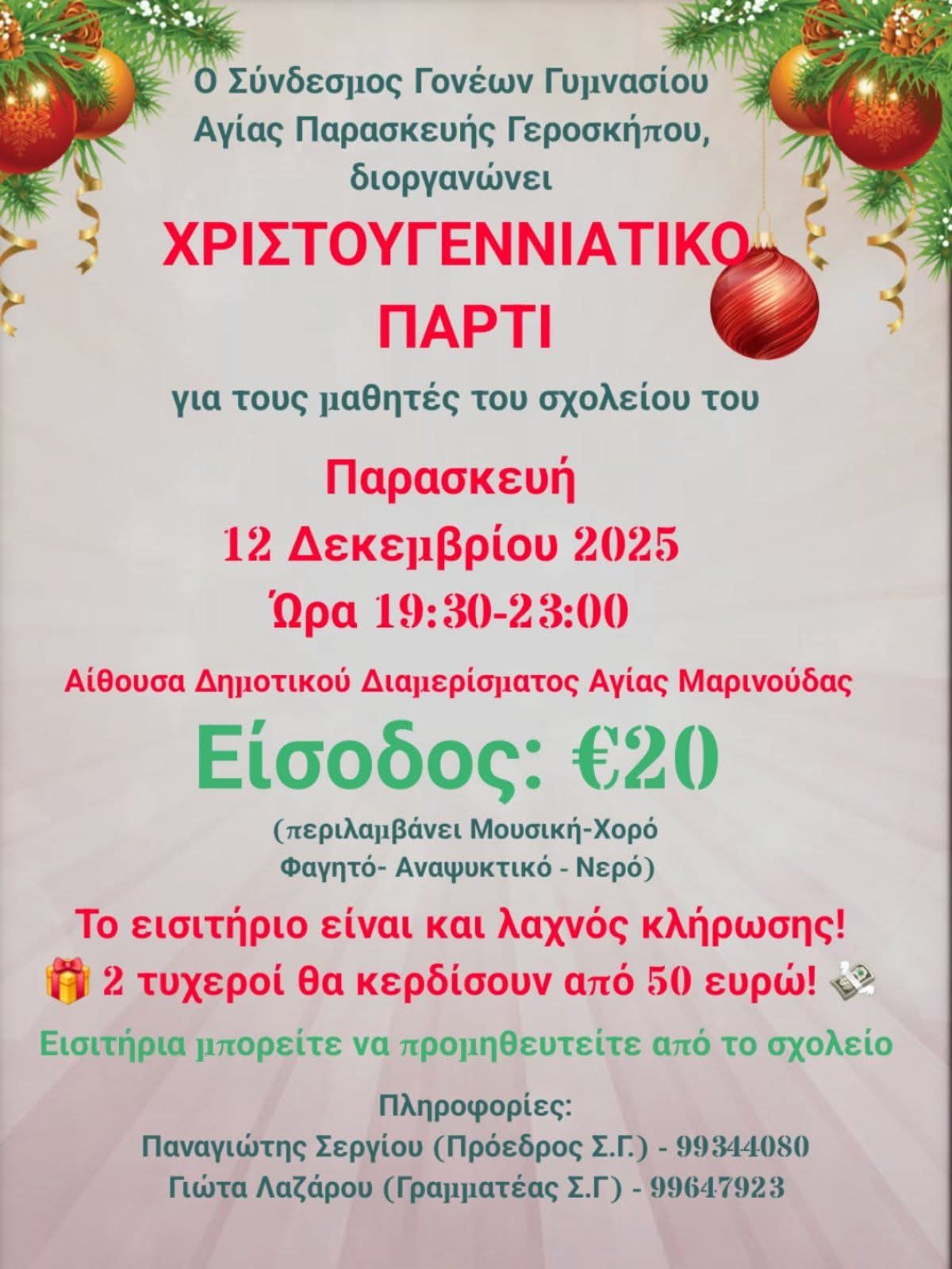 ΧΡΙΣΤΟΥΓΕΝΝΙΑΤΙΚΟ ΠΑΡΤΙ 12-12-2025 19,30 - 23-00